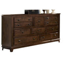 Provide your bedroom with ample storage space by adding this Shady Dresser to the Decor. Sturdily constructed with hardwoods and veneer for a dependable, lasting build, this shady dresser is hand-distressed for a beautiful, stylish finish. Hardware has a wrought metal look with a rich patina finish to continue the rustic design. In addition, eight drawers of various sizes will give you plenty of space to store all of your clothing, accessories and more. This dresser will blend beautifully with your Decor. Dimensions of dresser: 69" x 18" x 38"