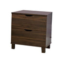 Contemporary aesthetics combine with clean lines and understated fluidity to make thisNightstandthe perfect addition to any upscale bedroom. Two spacious drawers keep your books, and other bedside necessities within arm's reach, even as metal glides ensure smooth drawer movement even year after year. The cut-out drawer pull and the dark walnut brown finish play up this nightstand's contemporary appeal, making it a great addition to any upscale home.Top the nightstand with a lamp to add personality and playfulness that complements your child's bedroom theme.