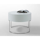 Add style and storage to your bedroom space with this modern and Stylish Nightstand. Founded atop curved stainless steel legs, its rounded frame is made from wood in a versatile white lacquer finish. Keep things tidied by tucking your nighttime essentials into its drawer, then set a woven wicker bin down below to hold extra blankets or magazines. On top, you will want to lend illumination with a gleaming glass lamp, perfect for a warm and relaxing glow. Add this nightstand to your bedroom and introduce a contemporary style to it. Note: Other featured items in image except this nightstand are sold separately.