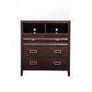 Designed to accommodate today's bedrooms, this 3 Drawer TV Media Chest offers stylish storage and doubles as a media center. The top offers plenty of room for your flat panel and the two media openings just below each feature a cord management hole. Ample drawers open easily via ball bearing metal glides. It's built to last from plantation-grown mahogany solids and okoume veneers in black cherry finish.
