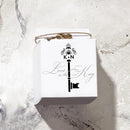 Inspired by the allure of the vintage style key, this graceful monogram will add a distinctive personal touch. A lovely option for those planning a day intended to reflect an old world charm. Combine the range of versatile stationery formats available to create a coordinated effect This unique personalized wrap has been designed to create a fold that extends above the surface of the favor box. With the addition of ribbon, jewels or other embellishments your favor wrap can easily become one-of-a-kind. All components sold separately. Product Material:text paper
