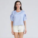 Young Women Stripes Pattern Sweet Bowknot Short Sleeves Blouse